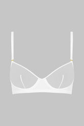 This white colour balconette bra features soft mesh with a sheer iridescent appearance. The wiring holds you in place perfectly. Fastens at the back with a comfortable clip.