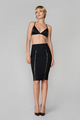 Paired with a shirt or Maison Close lingerie, the zip-up pencil skirt can be combined to create a multitude of sophisticated looks.